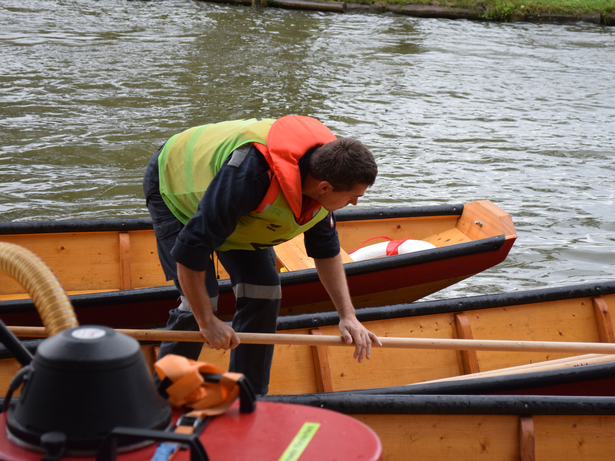 Am 01. September hieß es dann für unsere Zillenbesatzungen in Silber und Bronze das Erlernte umzusetzen. Auch hier wurde wieder gegen die Strömung gestakt und mit der Strömung der Parkour absolviert. Außerdem wurden ein Knoten in Bronze und zwei Knoten in Silber abgefragt. Während die Goldkämpfer noch gute Verhältnisse auf der Feistritz hatten, mussten die Bronze- und besonders die Silberteilnehmer mit den Folgen der starken Regenfälle kämpfen - darunter hoher Wasserstand, erhöhte Strömung und zahlreiches Treibgut.